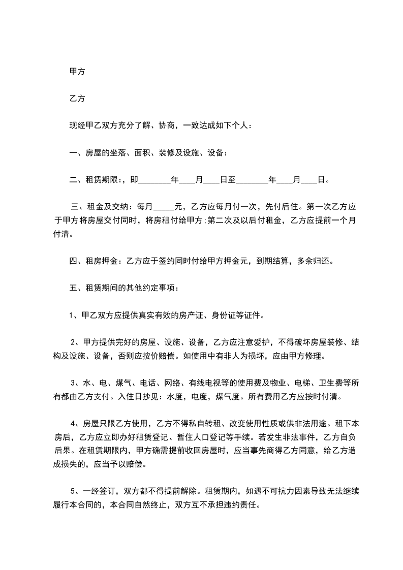 甲、乙双方就房屋租赁事宜,达成如下协议: