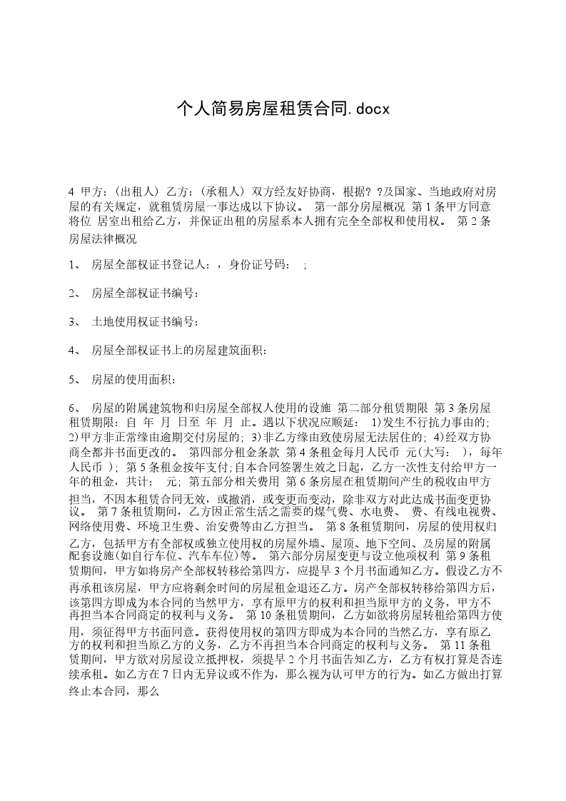 3、租赁期间,如乙方确因特殊情况需要退房,必须提前______个月书面通知甲方,解除协议,应付给甲方违约金,违约金以剩余租期内应交租金总额的______%计算。