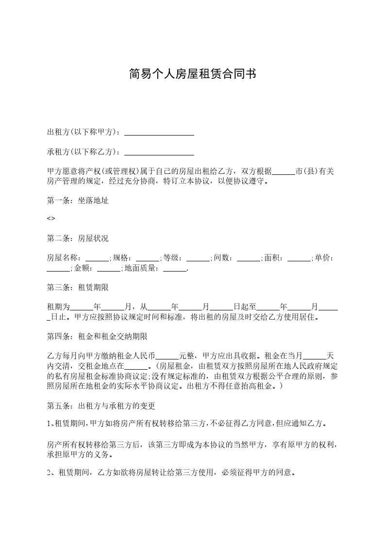 第五条:出租方与承租方的变更