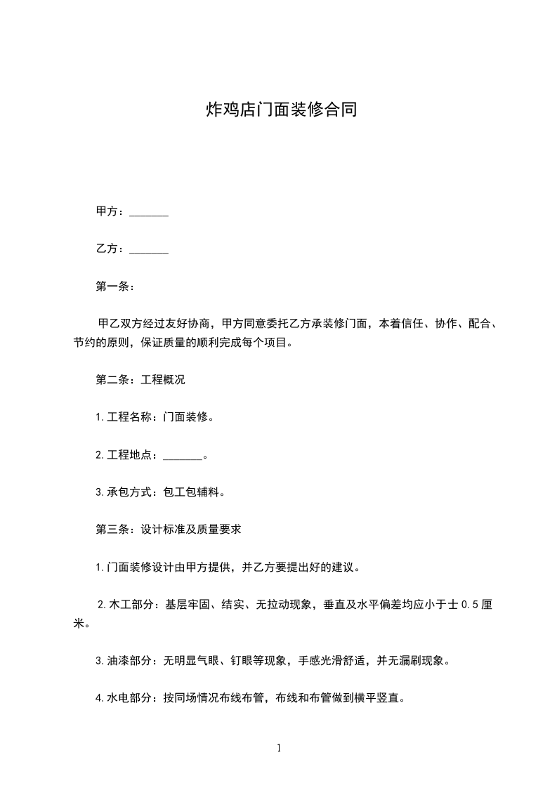 1.甲方将其合法拥有的座落于________________街______________招待所以__________门面房小间出租给乙方用于经营。该门面建筑面积共______________平方米;