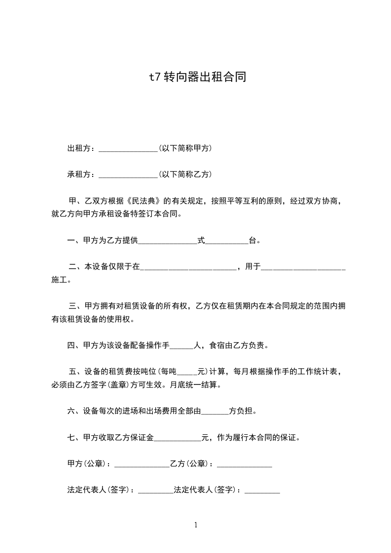 根据《中华人民共和国民法典》有关规定,为明确租赁双方的权利和义务关系,经双方协商一致签订本合同: