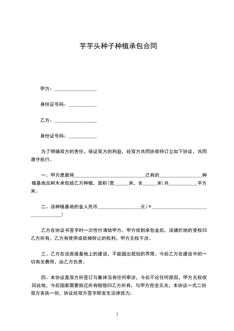 一、甲方愿意将______________________________己有的__________________种植基地及树木承包给乙方种植,面积(宽______米,长______米)共____________平方米。