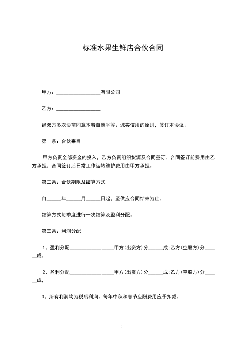 第一条:合伙宗旨