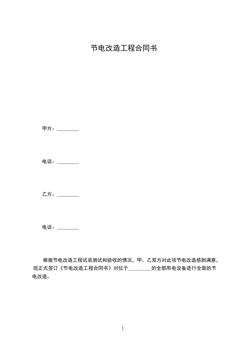 根据节电改造工程试装测试和验收的情况,甲、乙双方对此项节电改造感到满意,现正式签订《节电改造工程合同书》对位于_________的全部用电设备进行全面的节电改造。