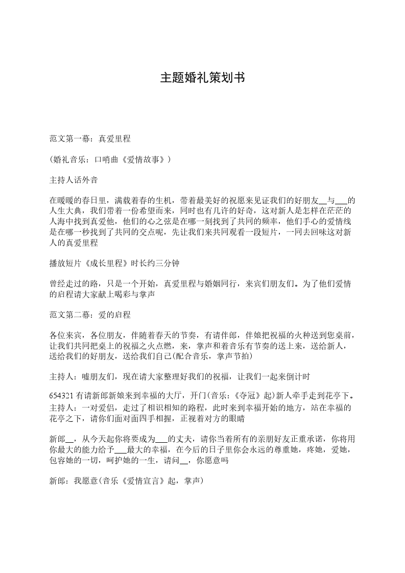 新娘___,从今天起你将成为__的妻子,请你当着所有的亲朋好友正重承诺,你将用你最大的能力给予__最大的幸福,在未来的日子里,你会永远的信任他,支持他,理解他,欣赏他,与他相依相守,不离不弃,直到地老天荒,请问___,你愿意吗