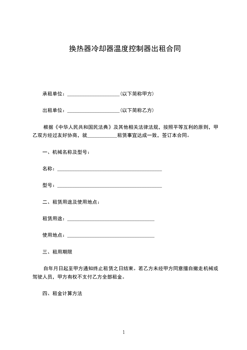 根据《中华人民共和国民法典》及有关规定,为明确设备租赁双方的权利和义务,经双方协商,待订立本合同,以便共同遵守: