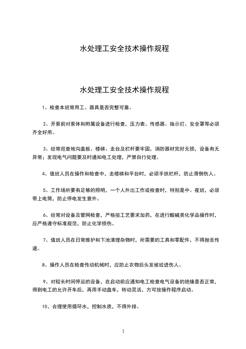 水处理工安全技术操作规程