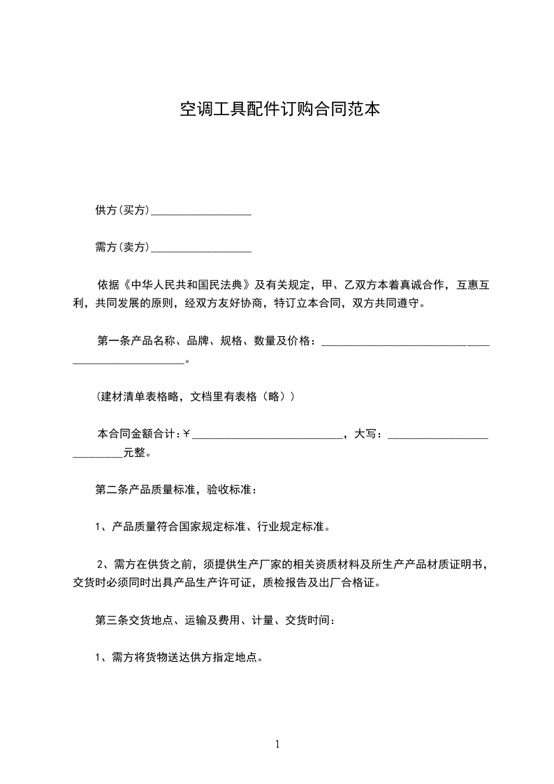 第一条产品名称、品牌、规格、数量及价格:__________________________________________________。