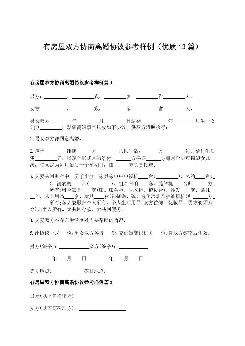 有房屋双方协商离婚协议参考样例篇13