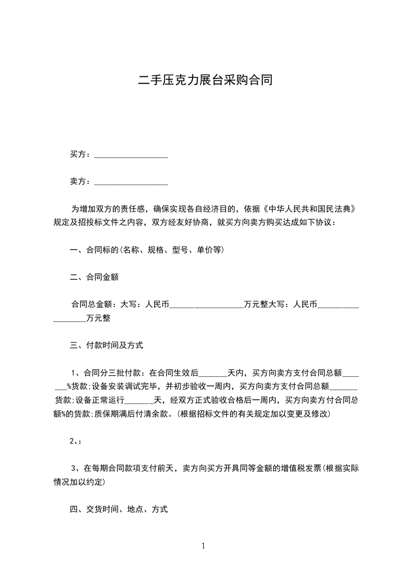 1、交货时间:合同生效后_______日内交货