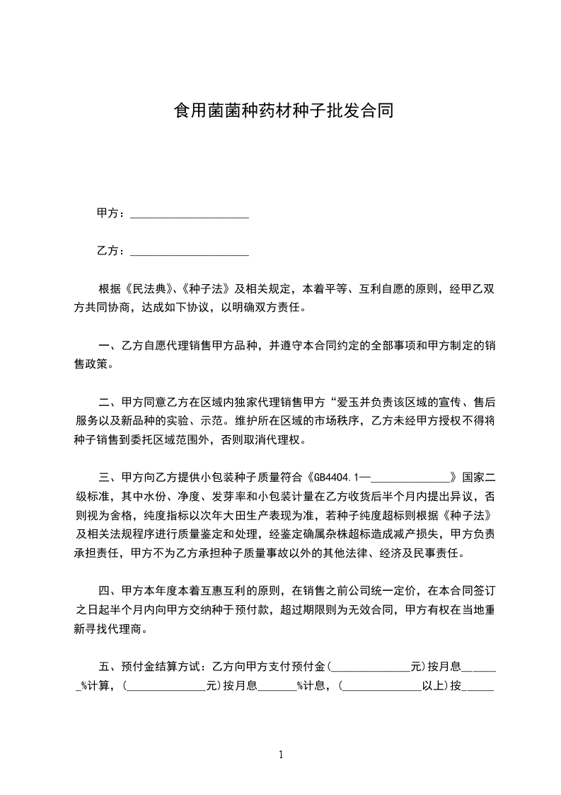 根据《民法典》、《种子法》及相关规定,本着平等、互利自愿的原则,经甲乙双方共同协商,达成如下协议,以明确双方责任。