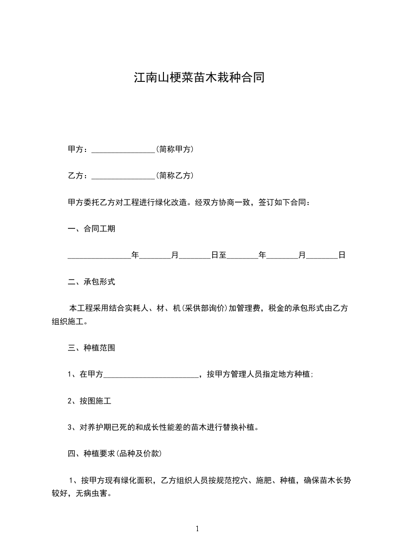 1、甲方负责提供苗木浇水水源,协调施工环境;