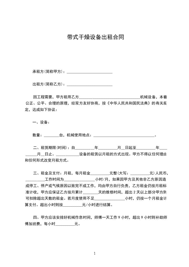 因工程需要,甲方租用乙方________________________________机械设备,本着公正、公平、合理的原理,经双方友好协商,按《中华人民共和国民法典》的有关规定,达成如下协议: