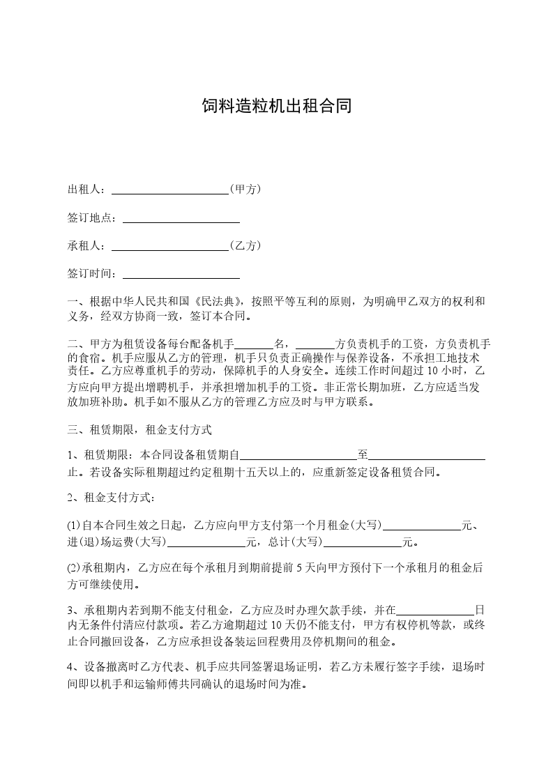 3、承租期内若到期不能支付租金,乙方应及时办理欠款手续,并在______________日内无条件付清应付款项。若乙方逾期超过10天仍不能支付,甲方有权停机等款,或终止合同撤回设备,乙方应承担设备装运回程费用及停机期间的租金。