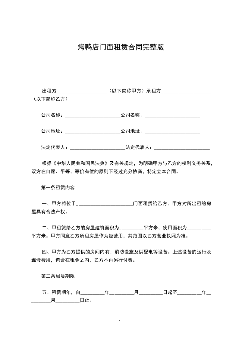 一、甲方将位于_______________________门面租赁给乙方。甲方对所出租的房屋具有合法产权。