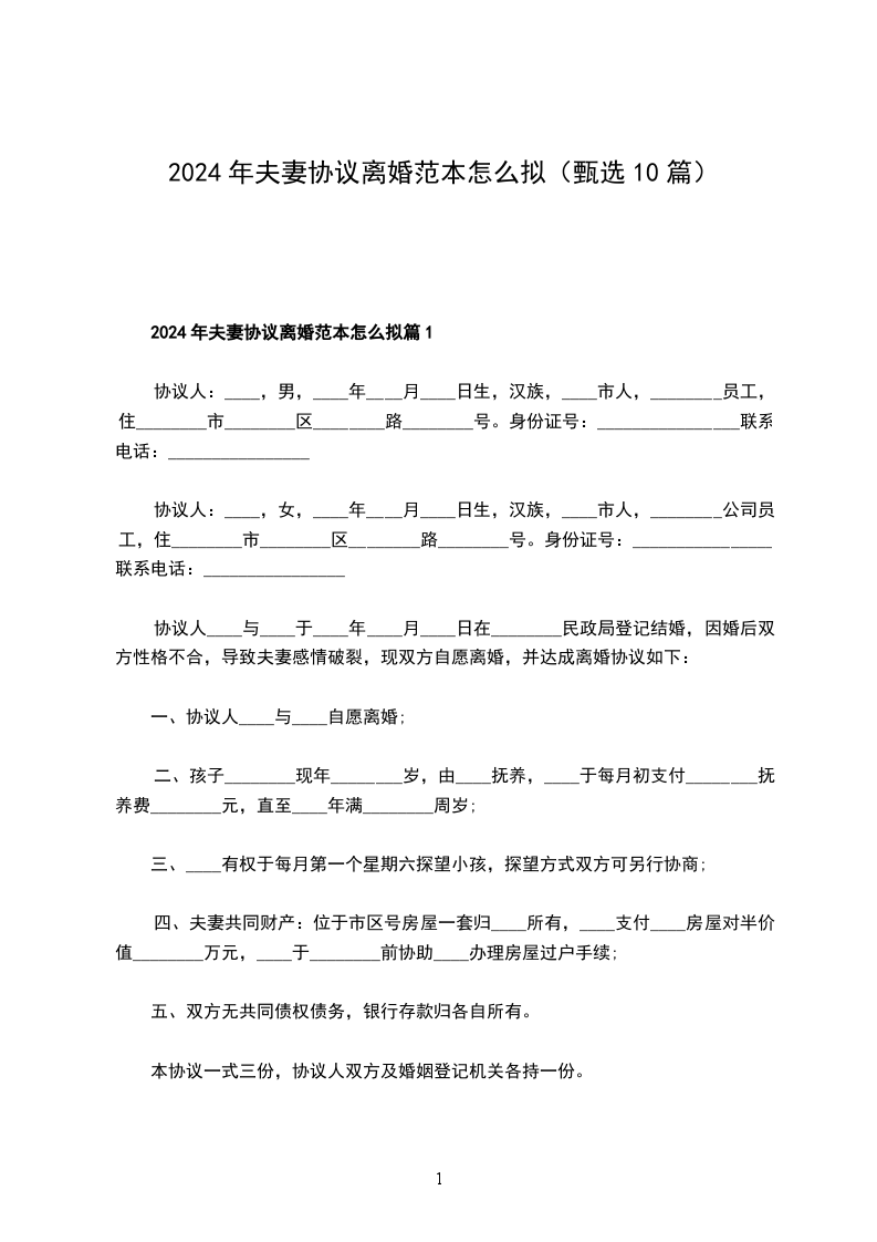 协议人双方于_______年_______月_______日在_______(结婚登记机关)办理结婚登记手续。因双方性格不合无法共同生活,夫妻感情已完全破裂,双方同意离婚并达成如下协议: