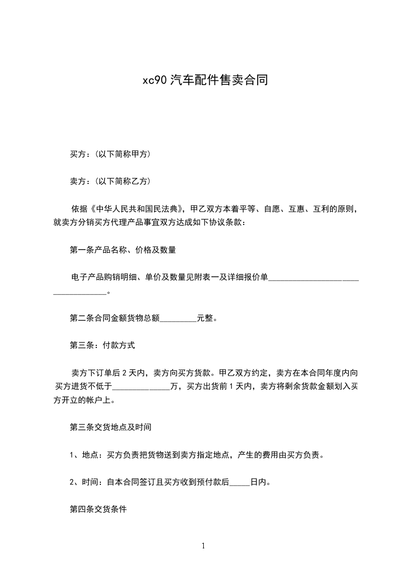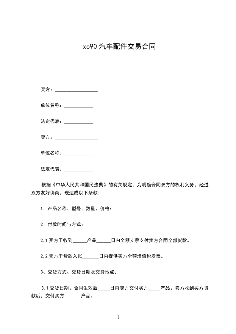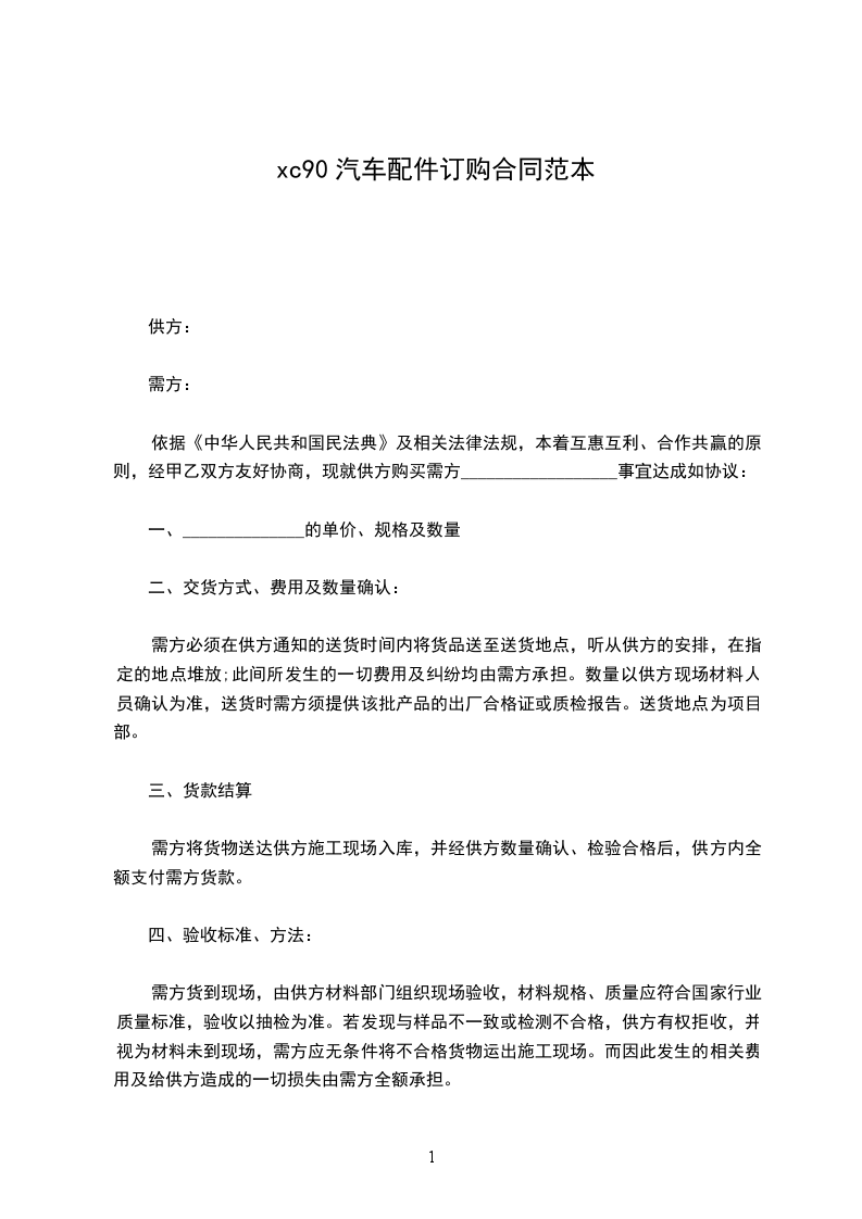 依据《中华人民共和国民法典》及相关法律法规,本着互惠互利、合作共赢的原则,经甲乙双方友好协商,现就供方购买需方__________________事宜达成如协议: