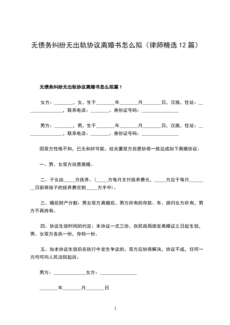 无债务纠纷无出轨离婚协议书怎么拟篇12