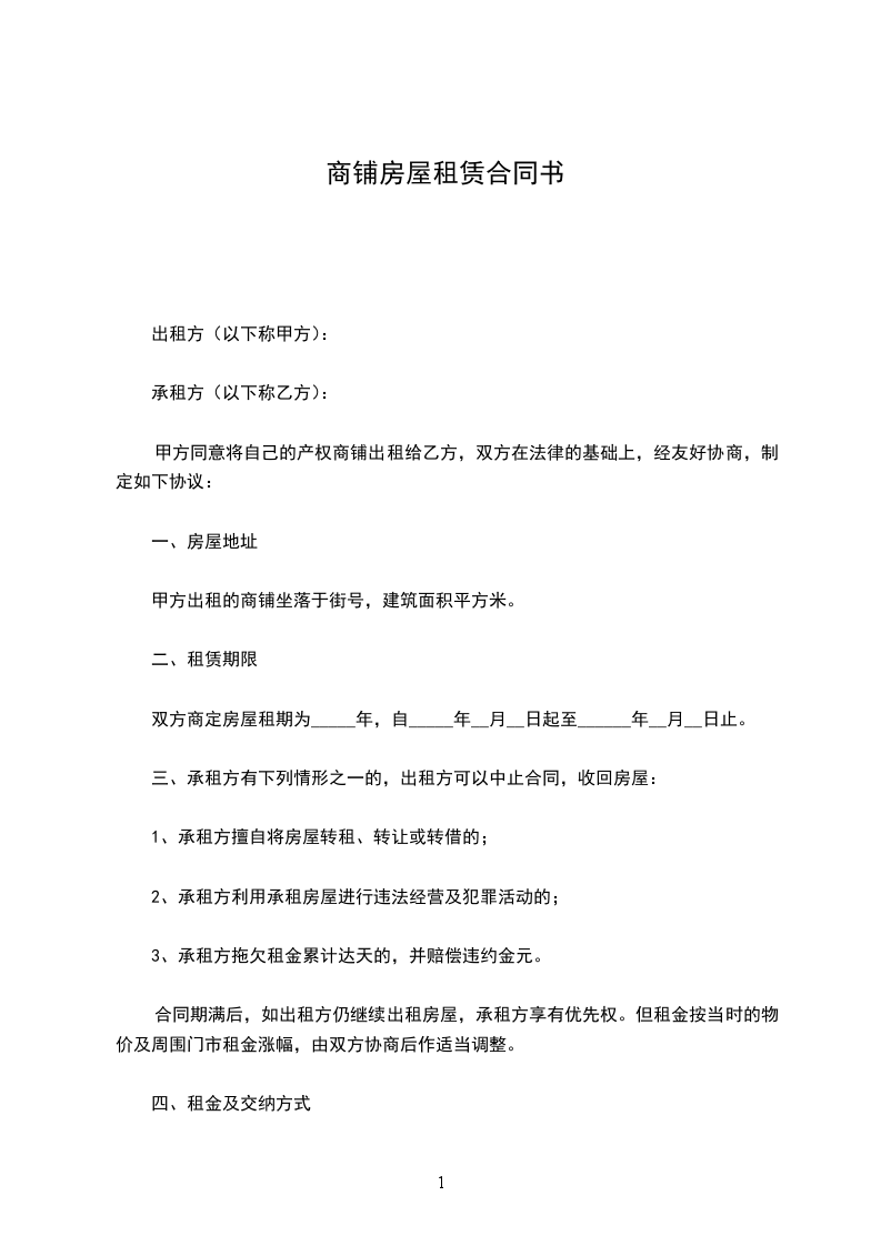 甲方同意将自己的产权商铺出租给乙方,双方在法律的基础上,经友好协商,制定如下协议: