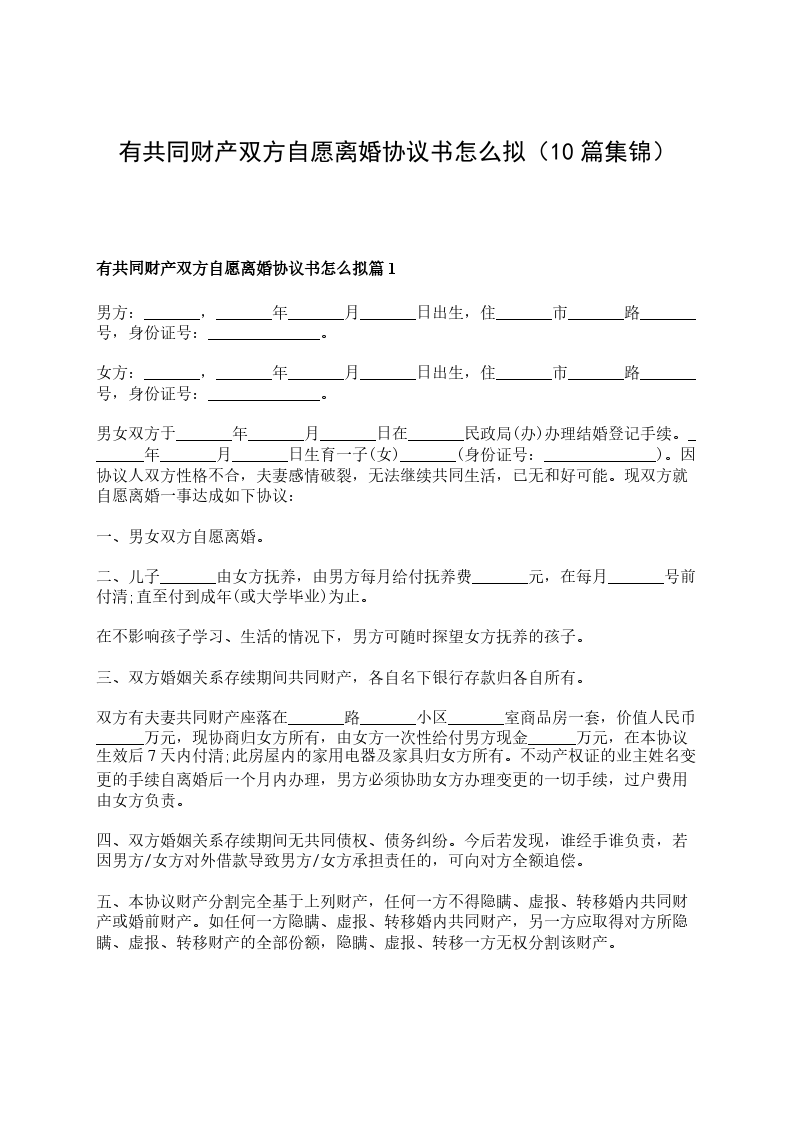 双方于 __年__月__日在__市__城区(县)人民政府的民政部门登记结婚,现因______(注:指感情不和等)的原因,自愿离婚,经双方协商一致,对有关事项,依《民法典》的规定达成如下自愿离婚协议书: