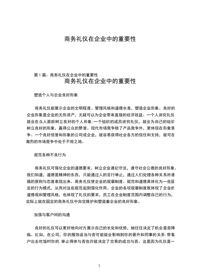 这篇商务礼仪在企业中的重要性范文符合你的要求,希望可以帮到你。