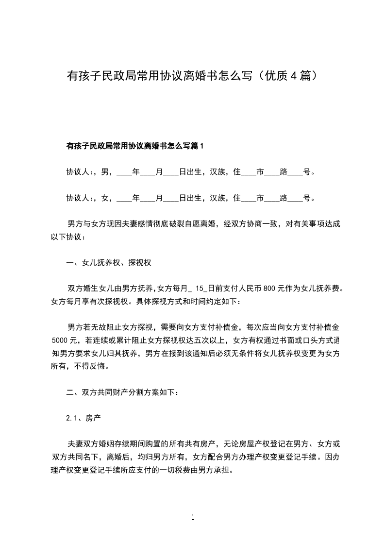 有孩子民政局常用协议离婚范本范文篇1