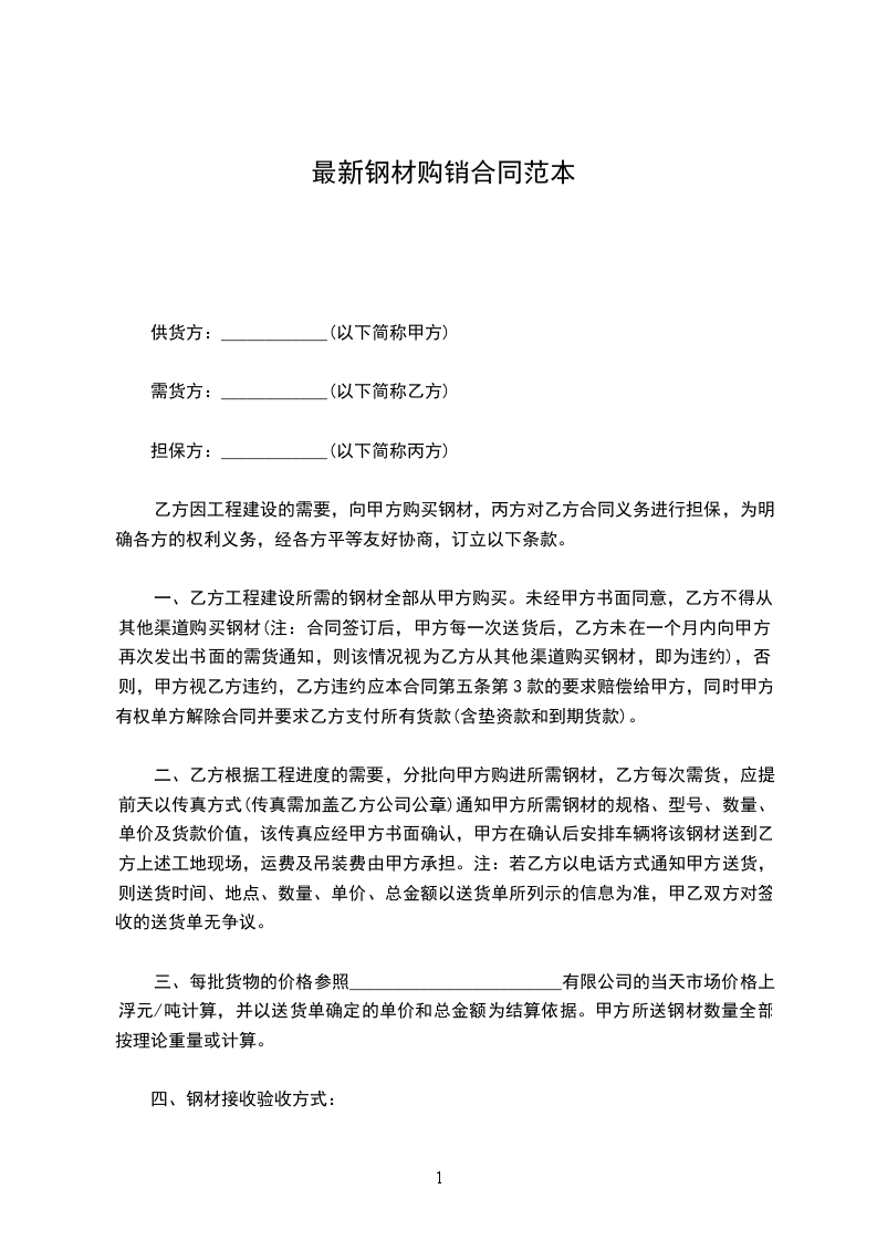 乙方因工程建设的需要,向甲方购买钢材,丙方对乙方合同义务进行担保,为明确各方的权利义务,经各方平等友好协商,订立以下条款。