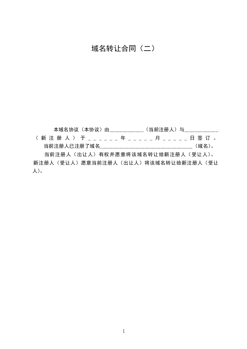本域名协议(本协议)由_____________(当前注册人)与_____________(新注册人)于______年_____月_____日签订。
