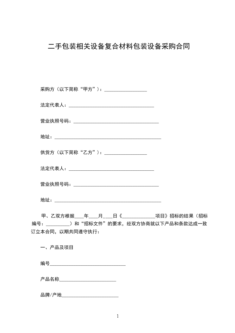 甲、乙双方根据____年____月____日《______________项目》招标的结果(招标编号:__________)和“招标文件”的要求,经双方协商就以下产品和条款达成一致,订立本合同,以期共同遵守执行:
