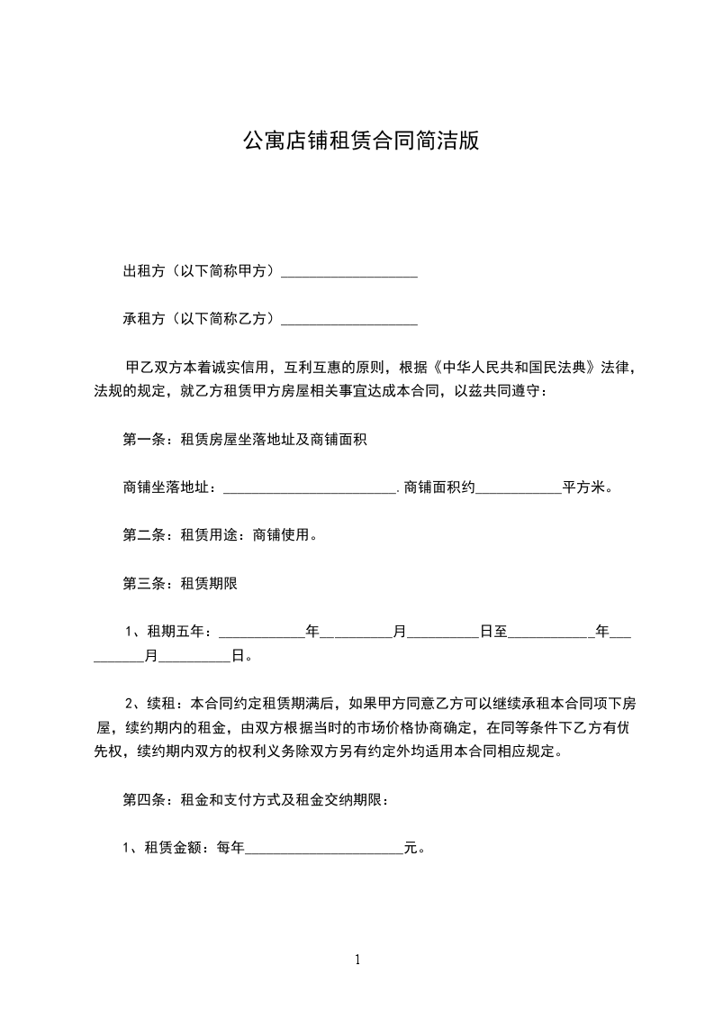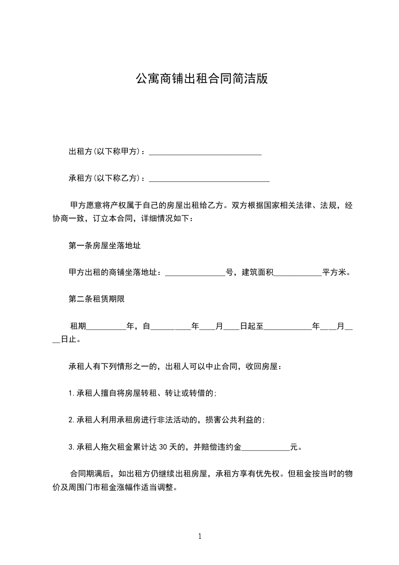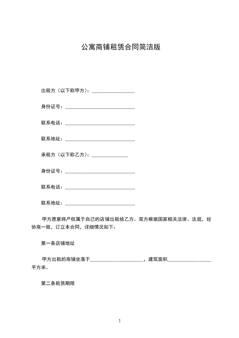 甲方出租的商铺坐落于______________________,建筑面积__________________平方米。