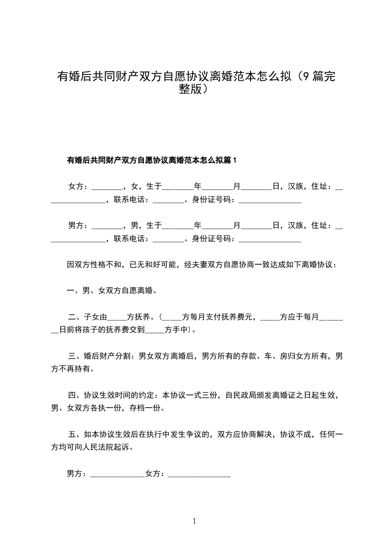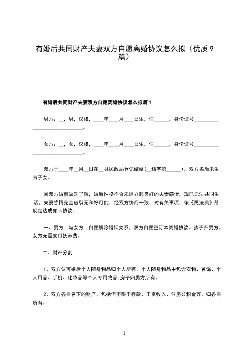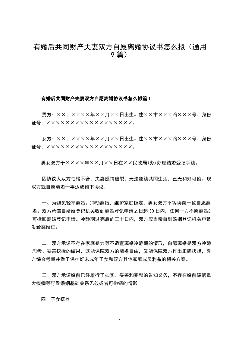 有婚后共同财产自愿离婚协议怎么拟篇9