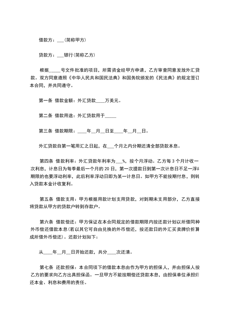 第一条 借款金额:外汇贷款____万美元。