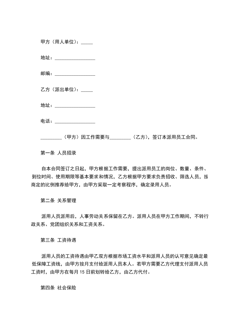 _________(甲方)因工作需要与_________(乙方),签订本派用员工合同。