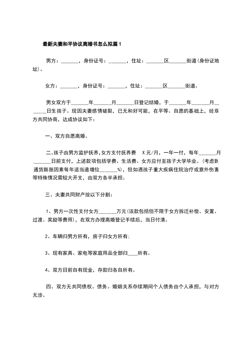 有房子夫妻和平离婚协议书怎么拟篇2