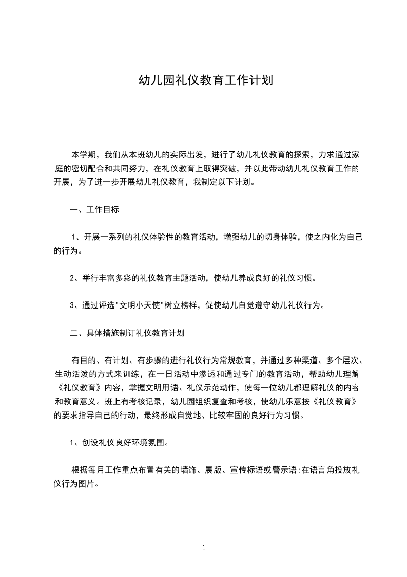 二、具体措施制订礼仪教育计划