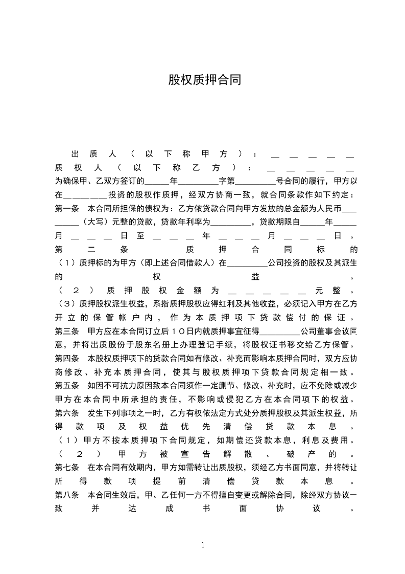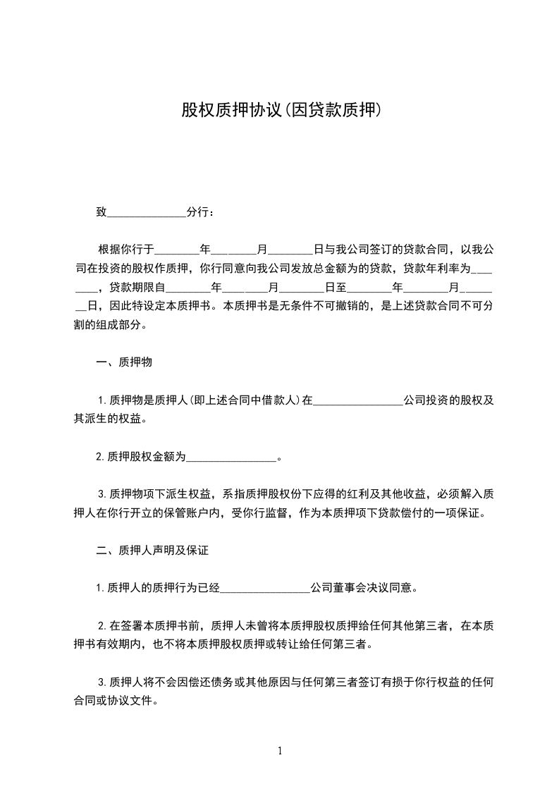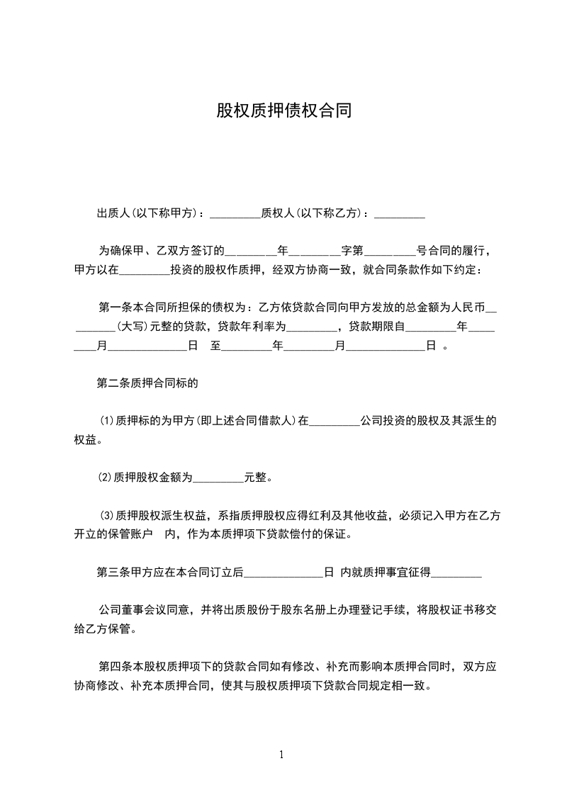 (2)质押股权金额为_____元整。