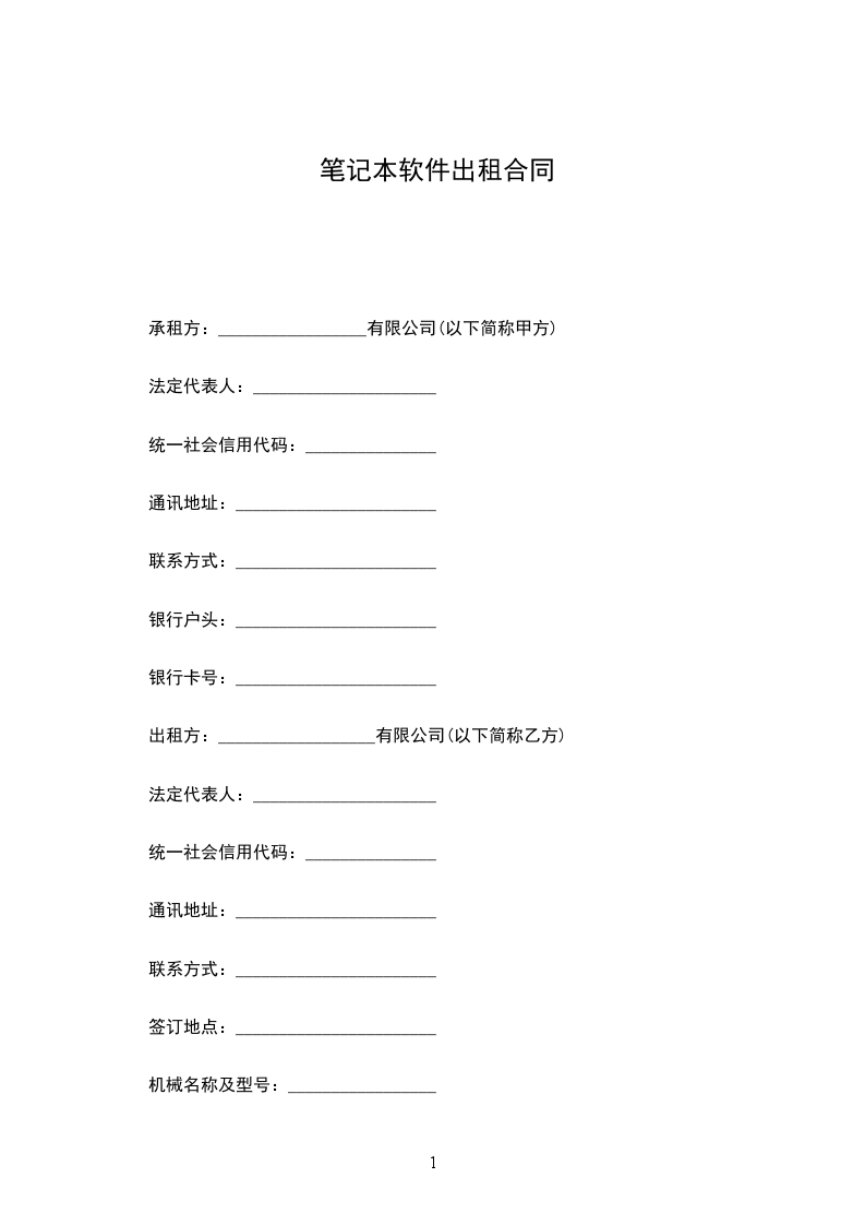 三、甲方以月租付款给乙方。甲方在调运乙方机械前,交付当月租赁费______________元整。每月________日前付清乙方当月租赁费