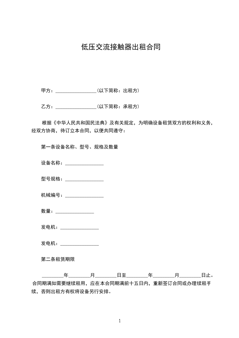 根据《中华人民共和国民法典》及有关规定,为明确设备租赁双方的权利和义务,经双方协商,待订立本合同,以便共同遵守: