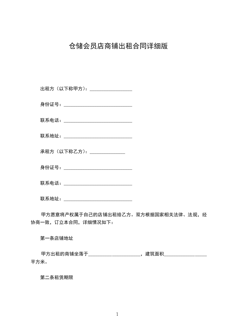 甲方出租的商铺坐落于______________________,建筑面积__________________平方米。