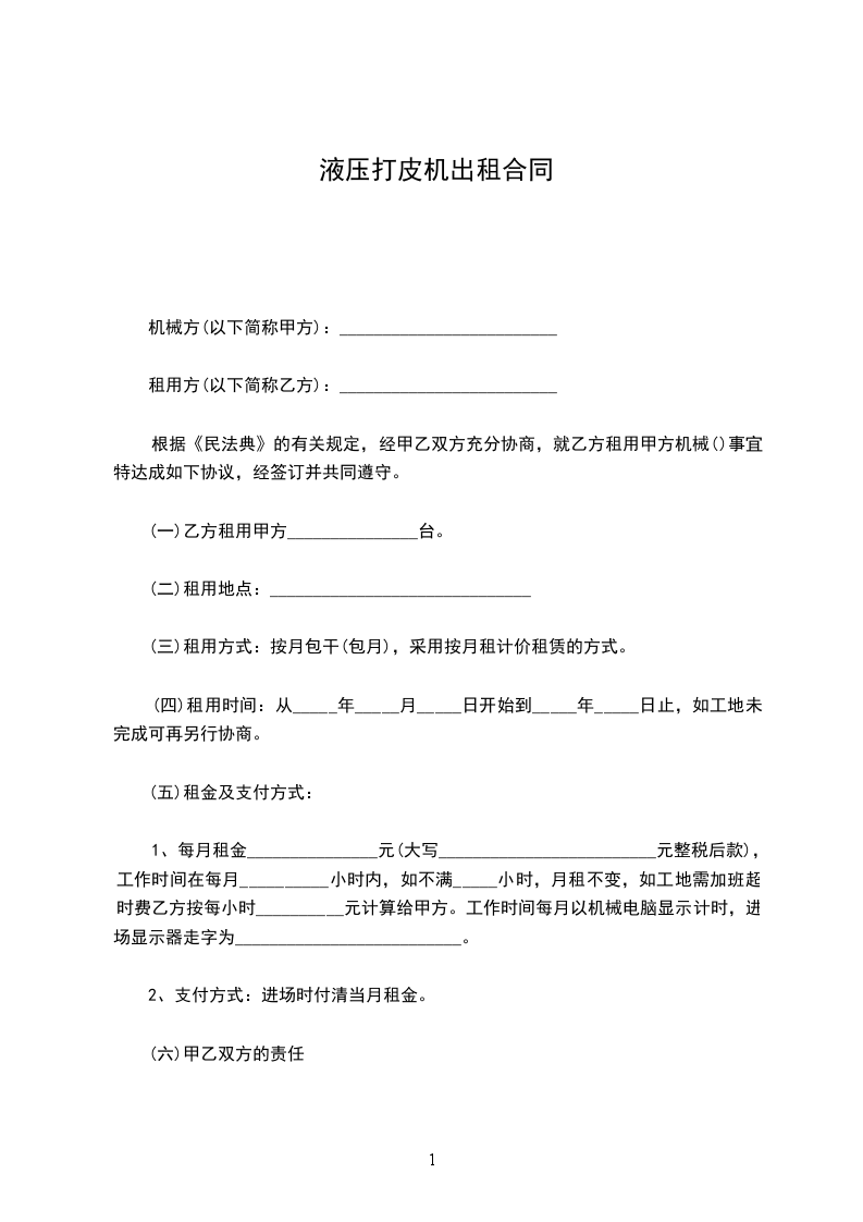 根据《民法典》的有关规定,经甲乙双方充分协商,就乙方租用甲方机械()事宜特达成如下协议,经签订并共同遵守。