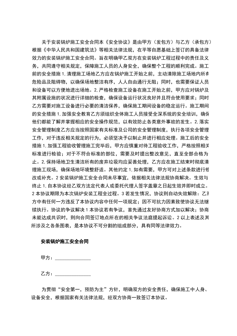 为贯彻“安全第一,预防为主”的方针,明确双方的安全责任,确保施工中人身、设备安全,根据国家有关法律法规,经双方协商一致签订本协议。