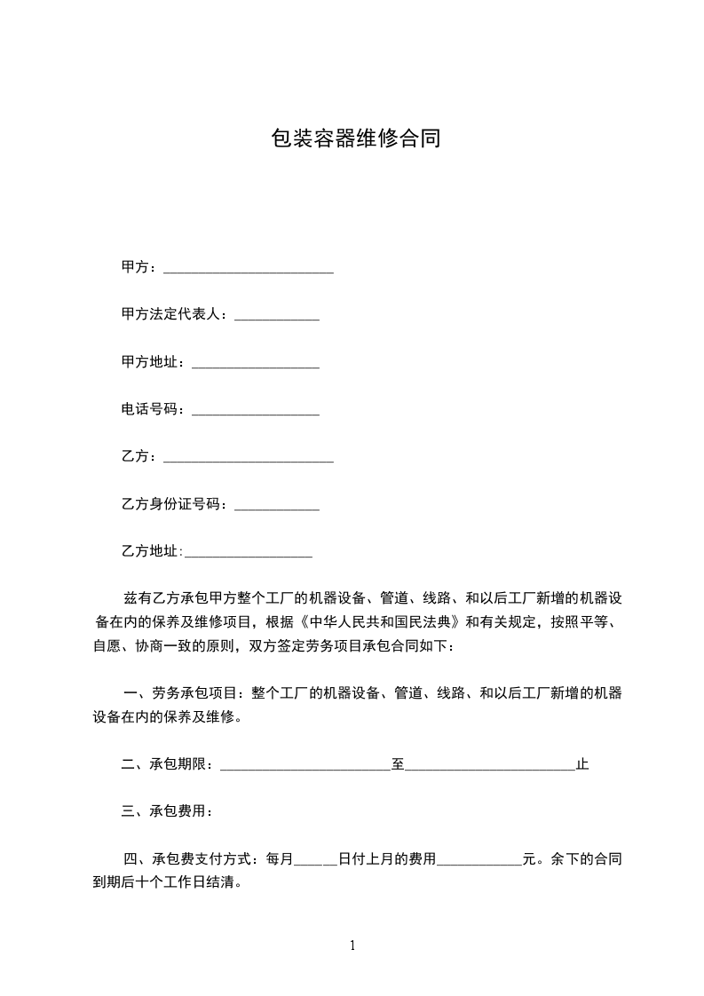 根据《中华人民共和国民法典》有关规定,为明确租赁双方的权利和义务关系,经双方协商一致签订本合同:
