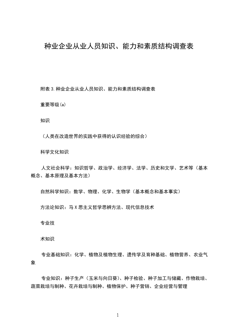 附表3.种业企业从业人员知识、能力和素质结构调查表