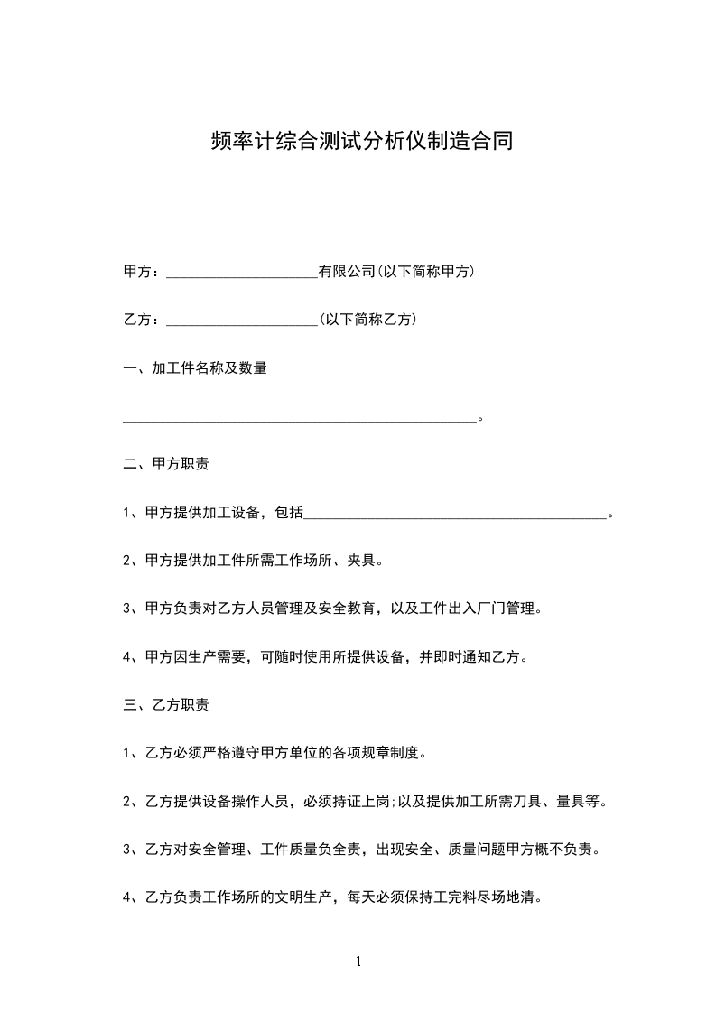 2、乙方提供设备操作人员,必须持证上岗;以及提供加工所需刀具、量具等。