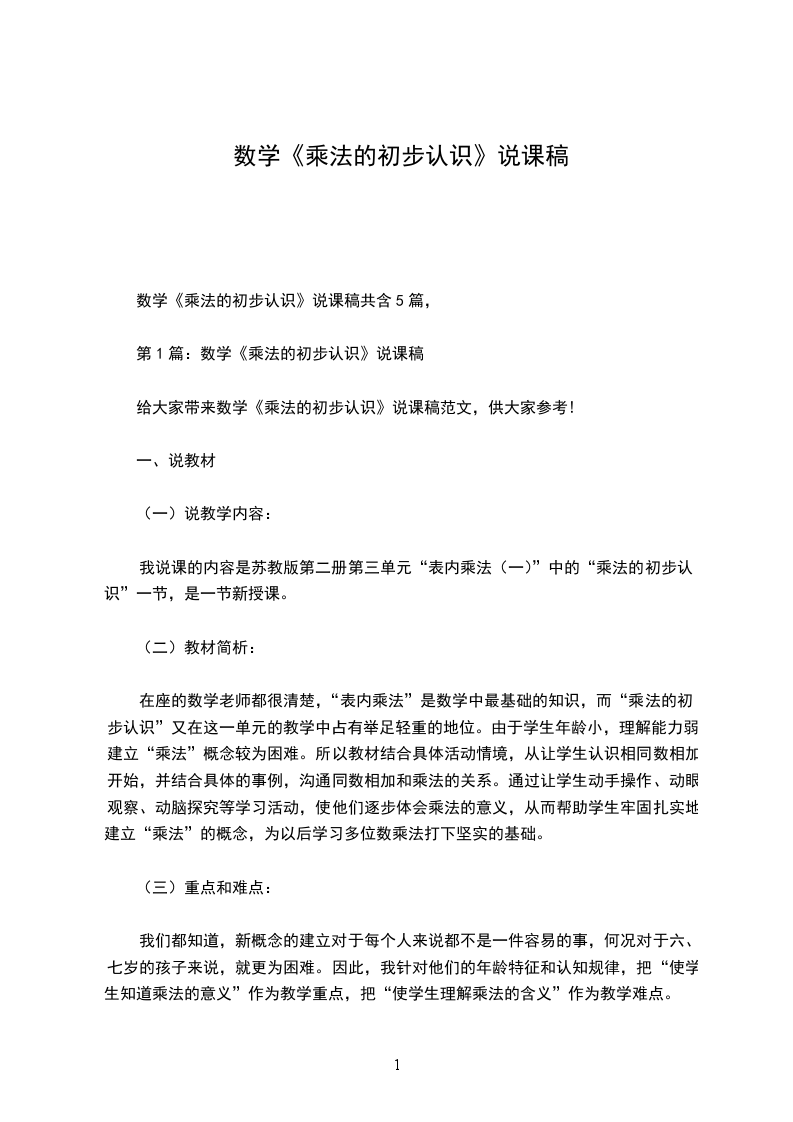 第1篇:数学《乘法的初步认识》说课稿