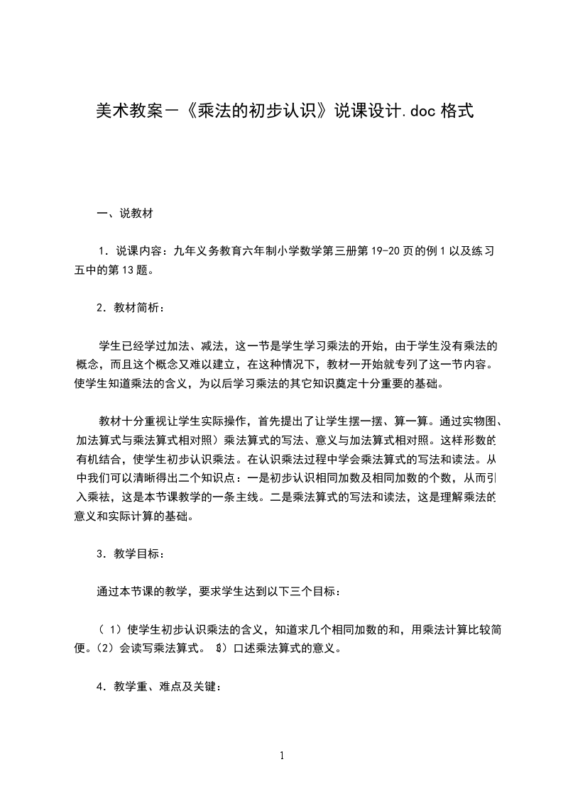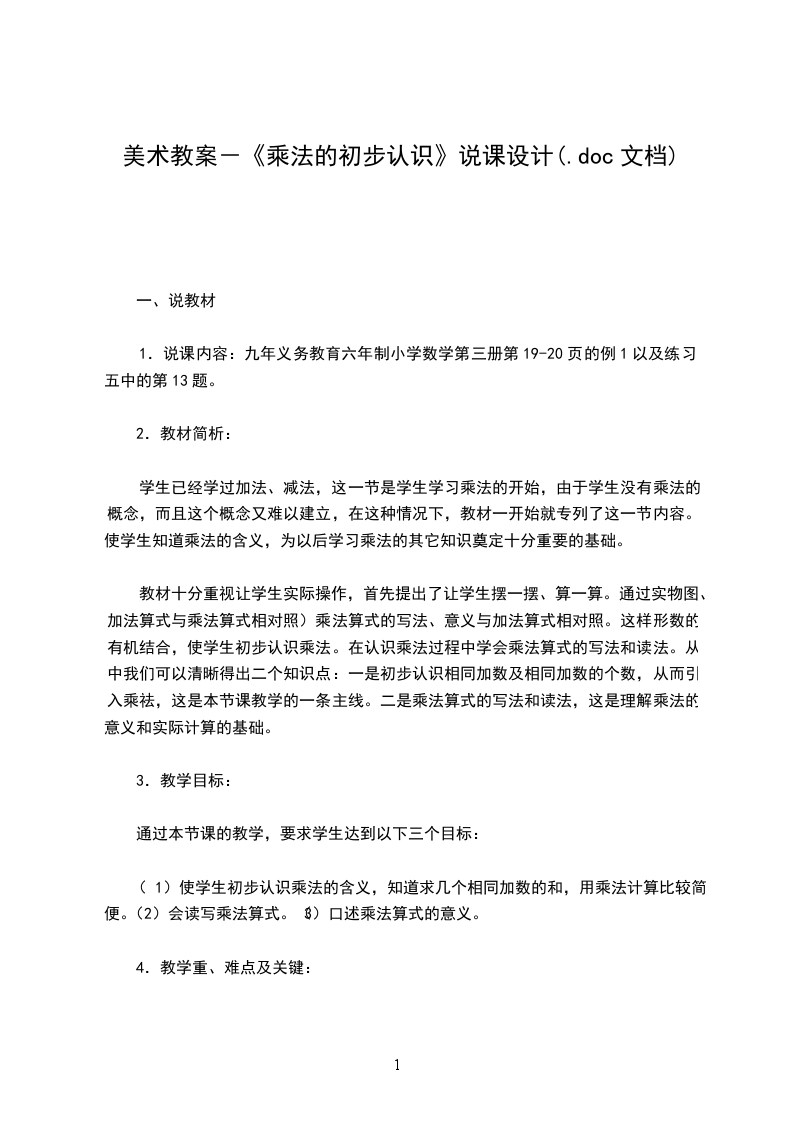 希望这篇数学《乘法的初步认识》说课稿范文能对你的学习与工作带来参考借鉴作用。