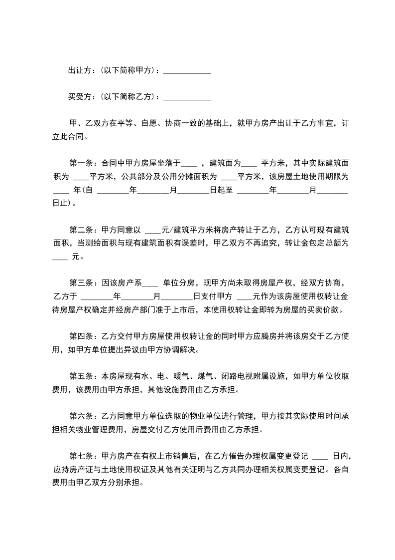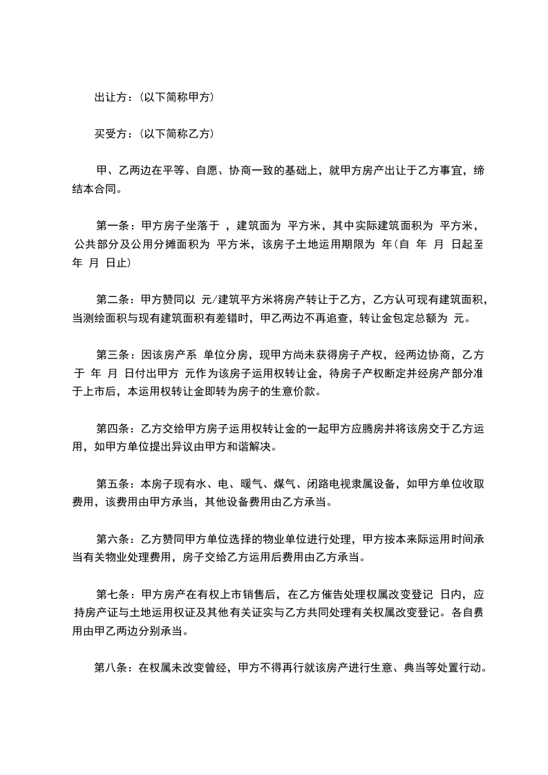 1、由于公司职工房产手续尚在集中管理中,自房屋交付至正式办理房产过户手续尚需一定时间,合同双方对此已有清醒认识,甲乙双方均不得以此为由提出变更和解除合同;