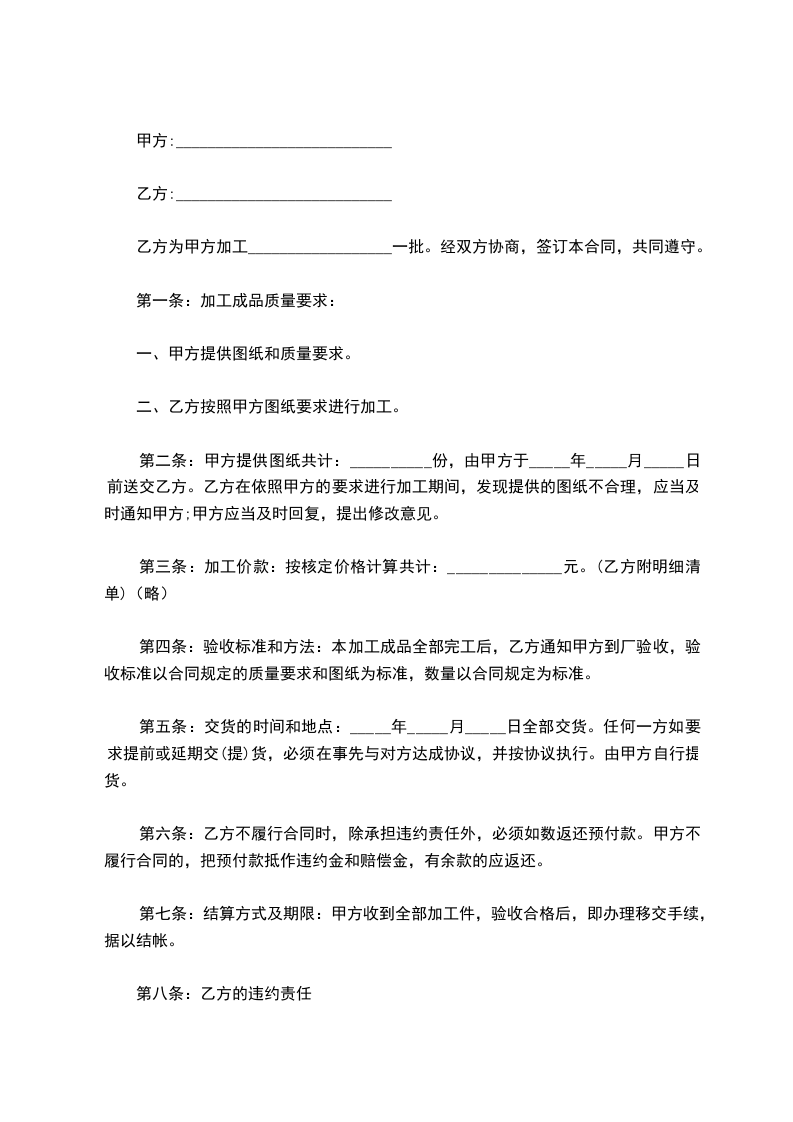 一、质量标准:按甲方提供(图纸)型号及技术要求制作,产品自交货之日起质保期______年。