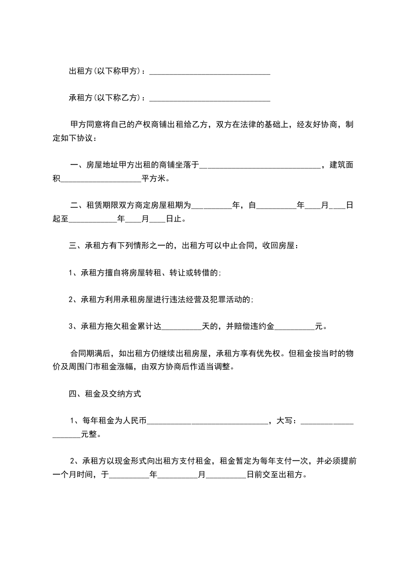 一、房屋地址甲方出租的商铺坐落于______________________________,建筑面积____________________平方米。