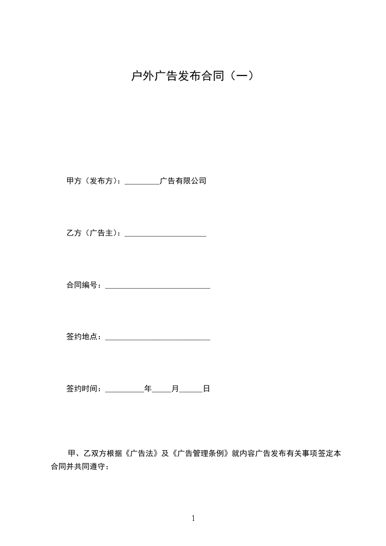 甲方(发布方):_________广告有限公司